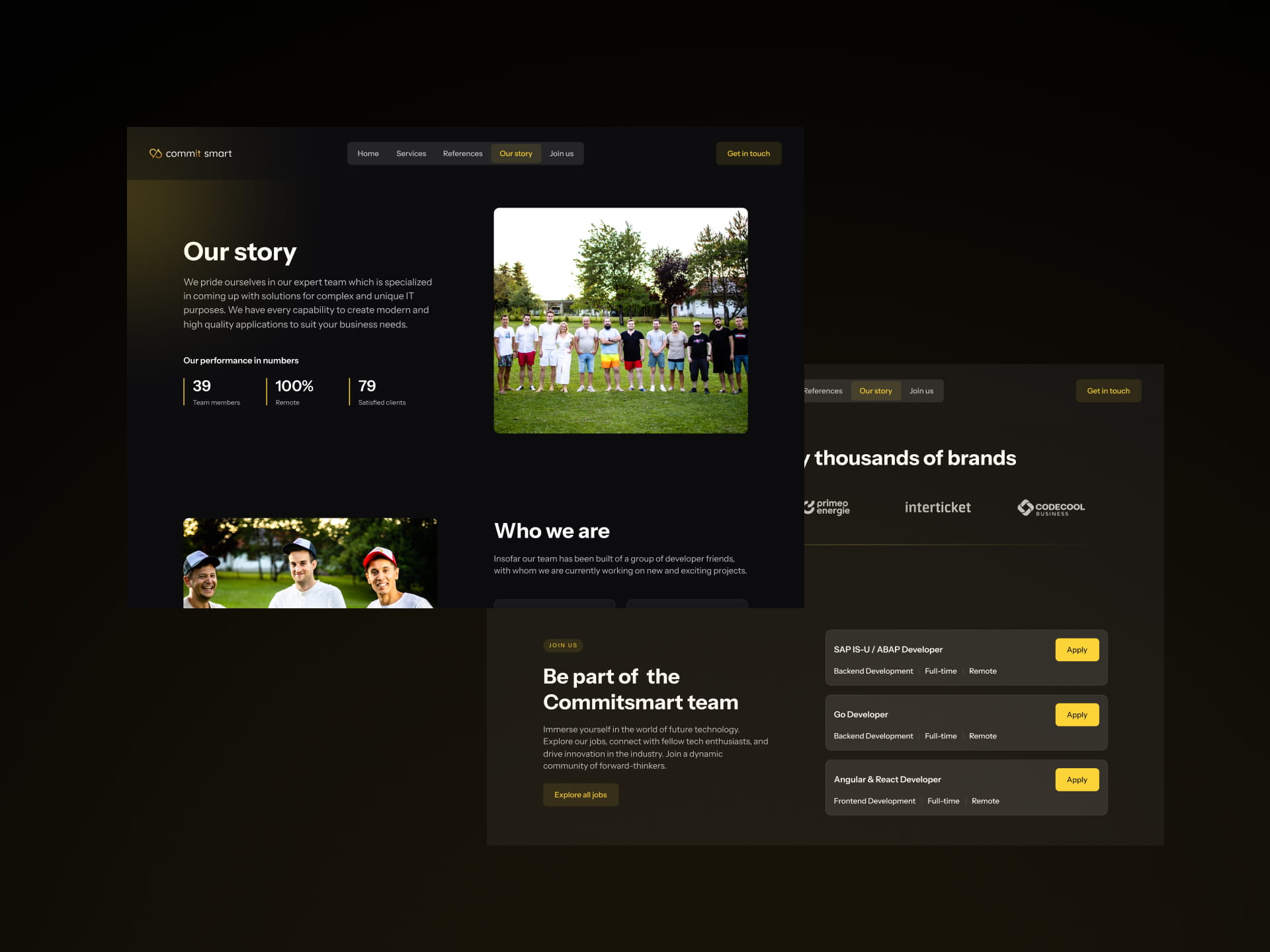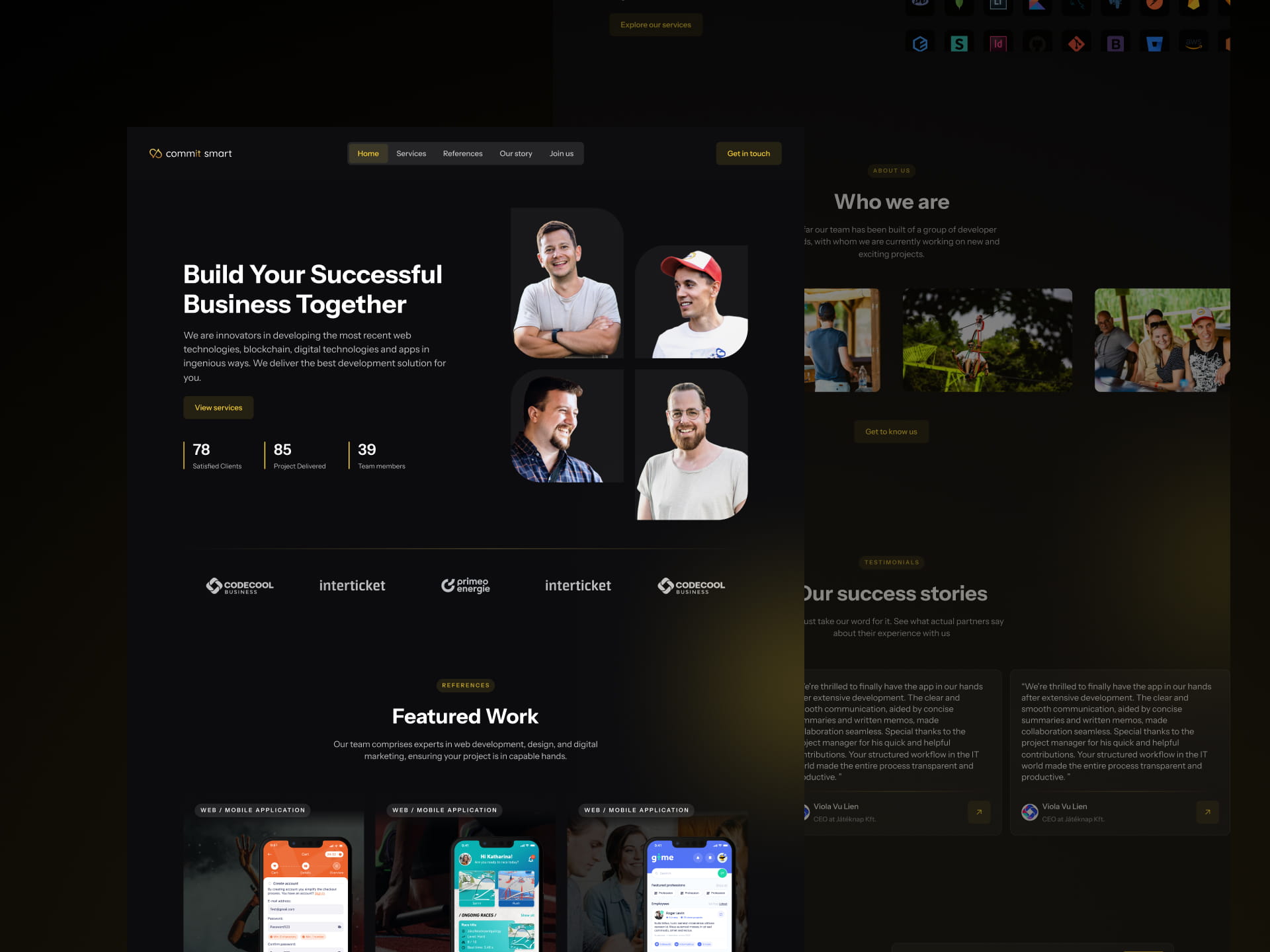 Commit Smart is a digital product and development agency website designed to communicate a broad, high-level service offering-including software development, AI solutions, UX/UI design, and IT consulting-in a clear and conversion-focused way.