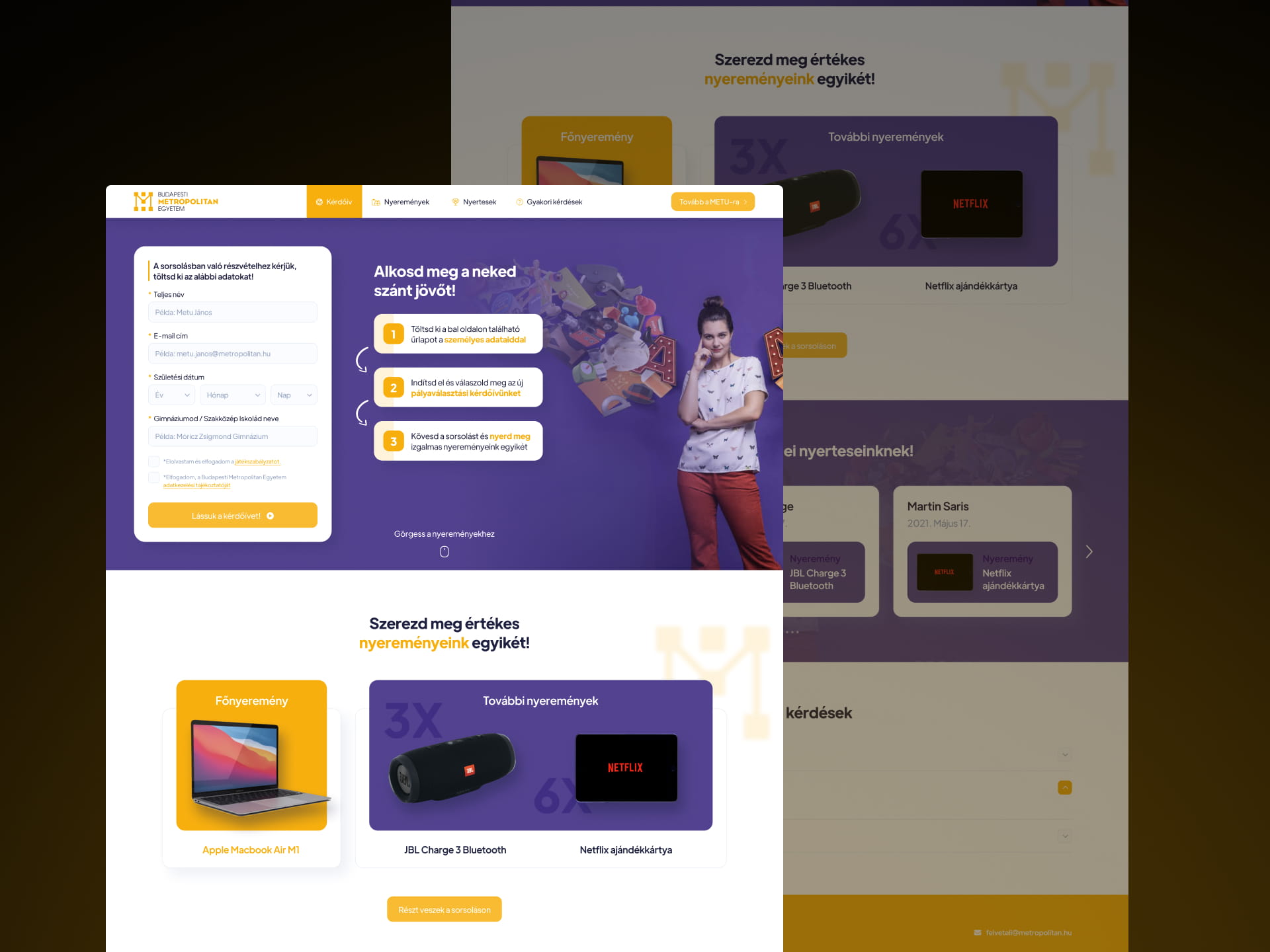 To encourage participation, the platform integrates a prize-based system where users can enter a giveaway by completing the questionnaire. This not only increases conversion rates but also creates a sense of excitement and motivation throughout the journey.
